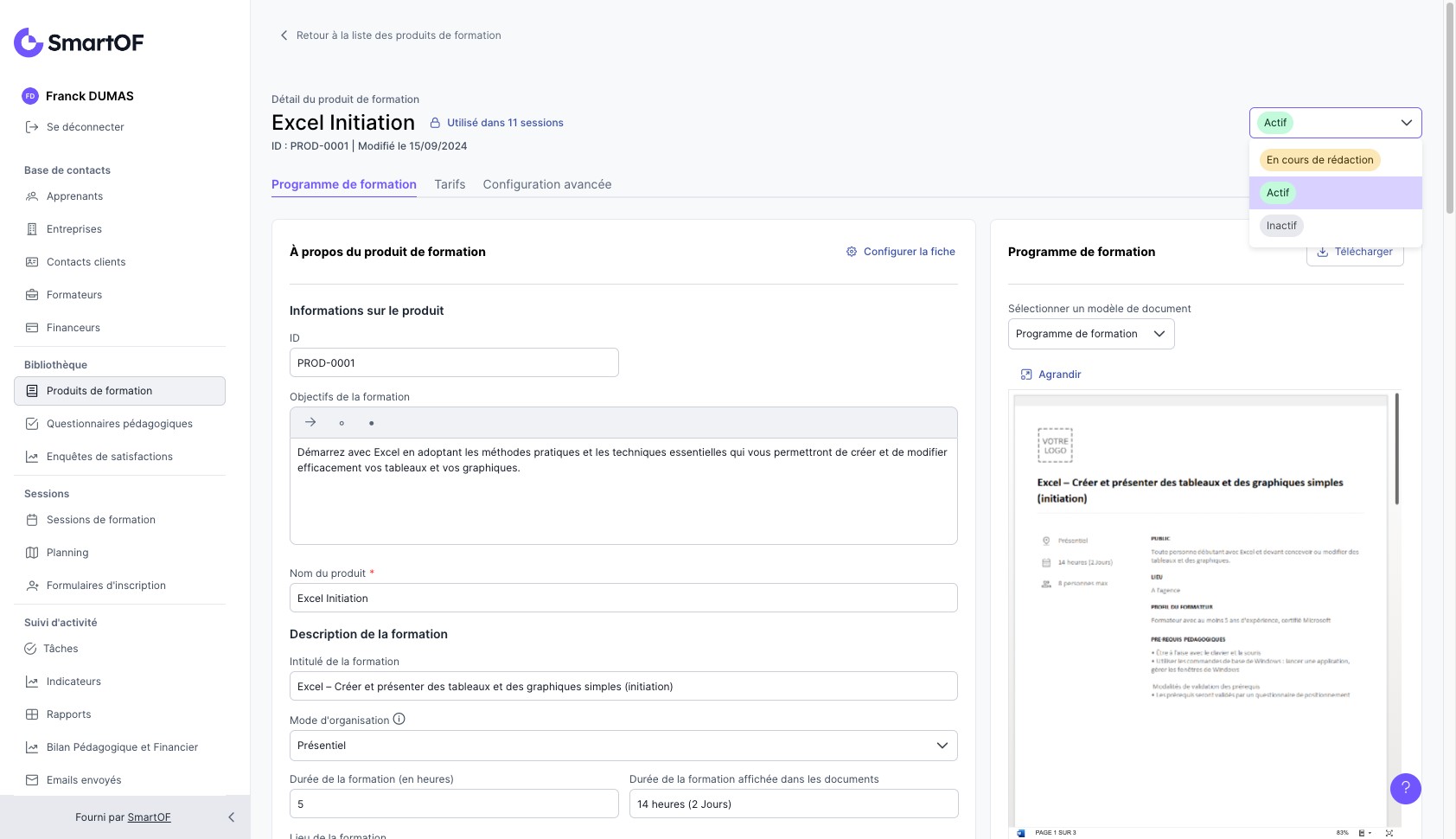 Créer un produit de formation