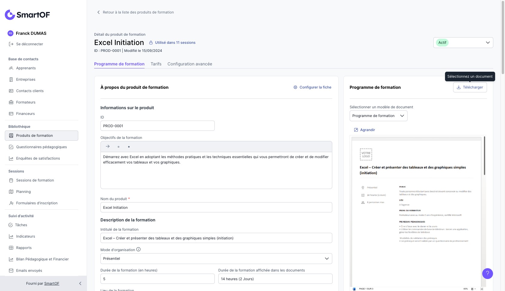 6. Pour télécharger en PDF votre programme de formation, cliquez sur "Télécharger".