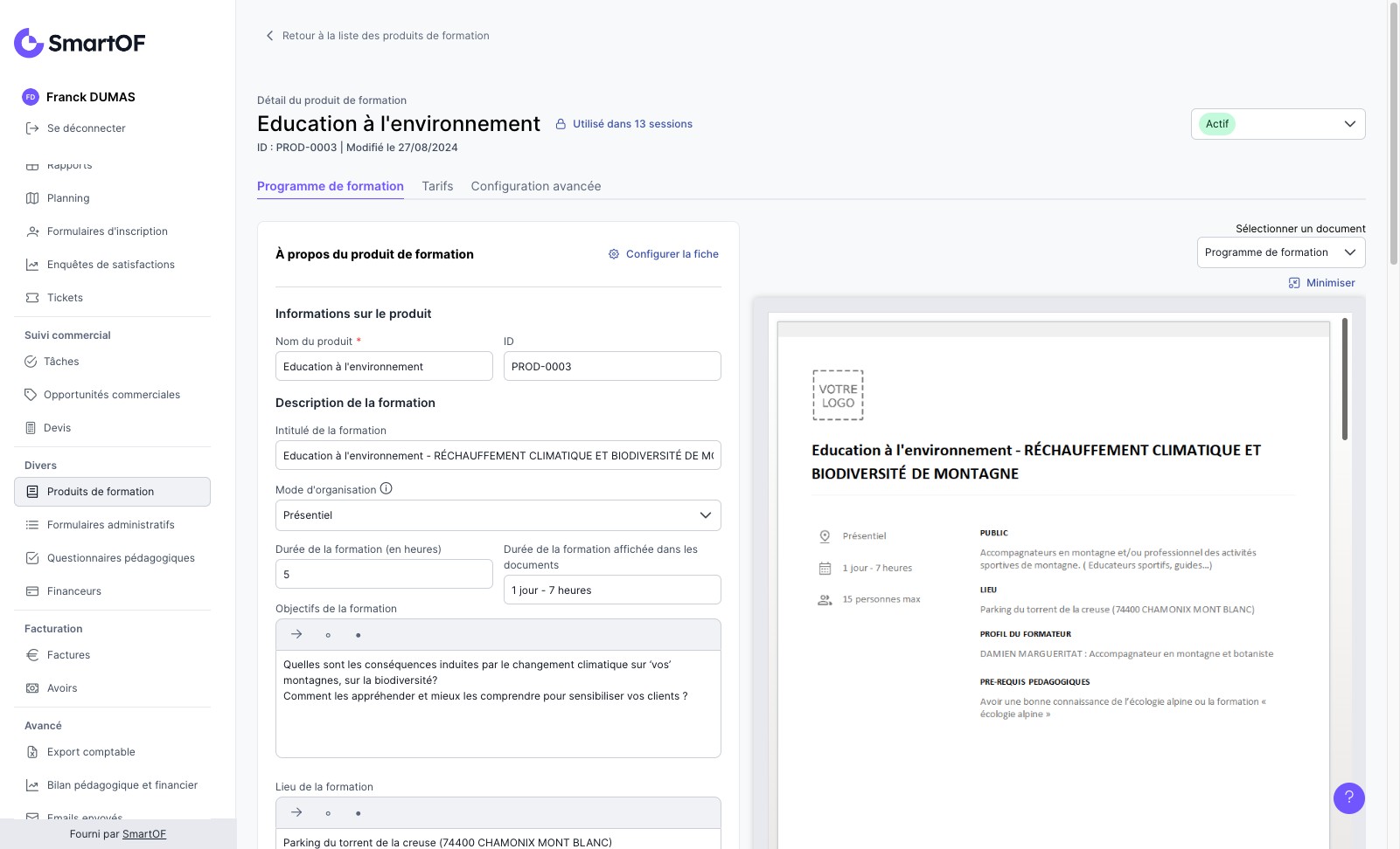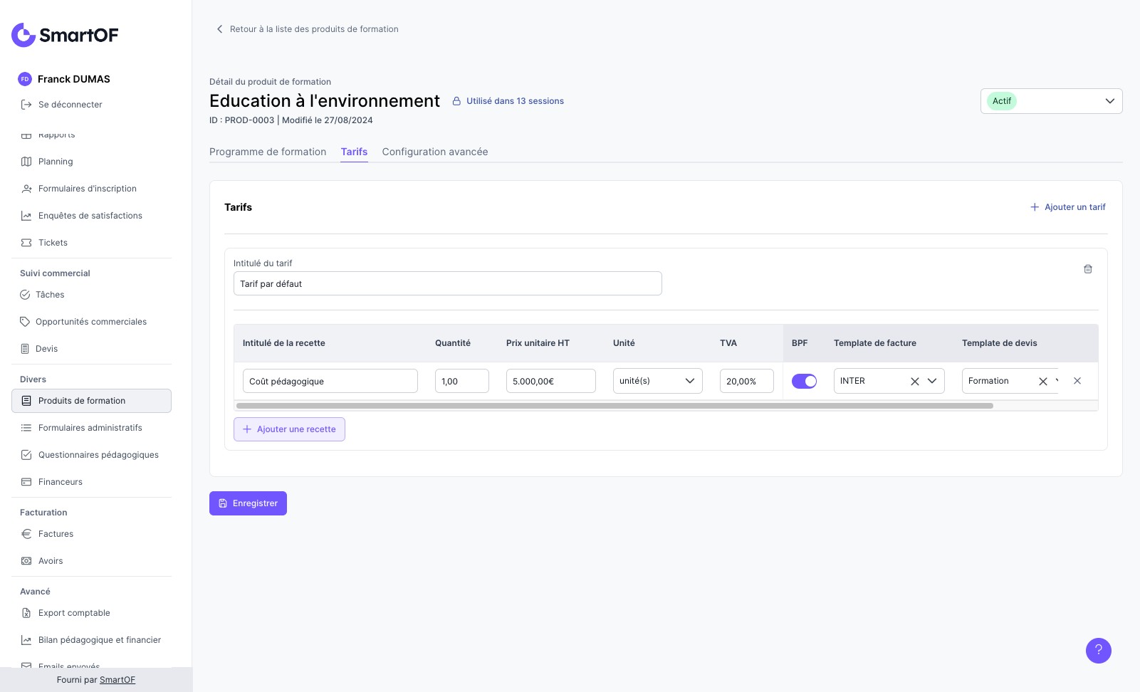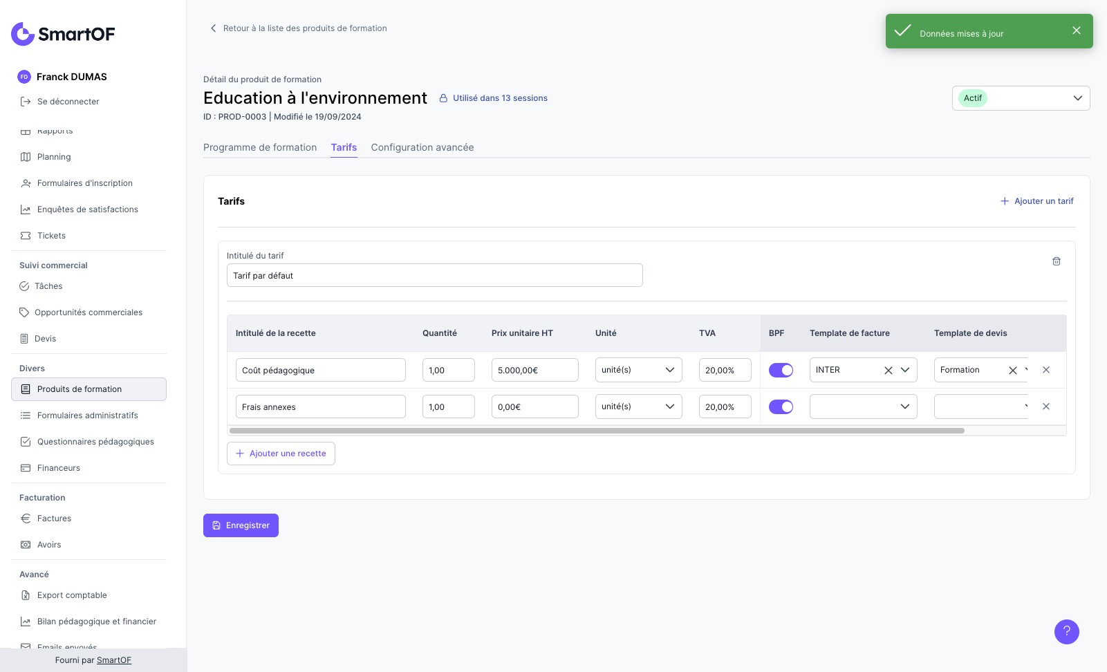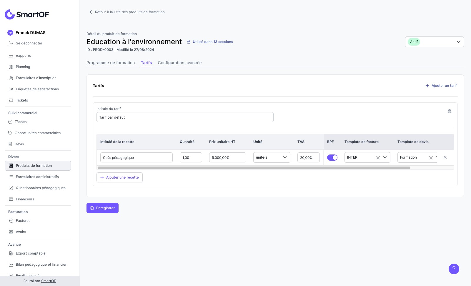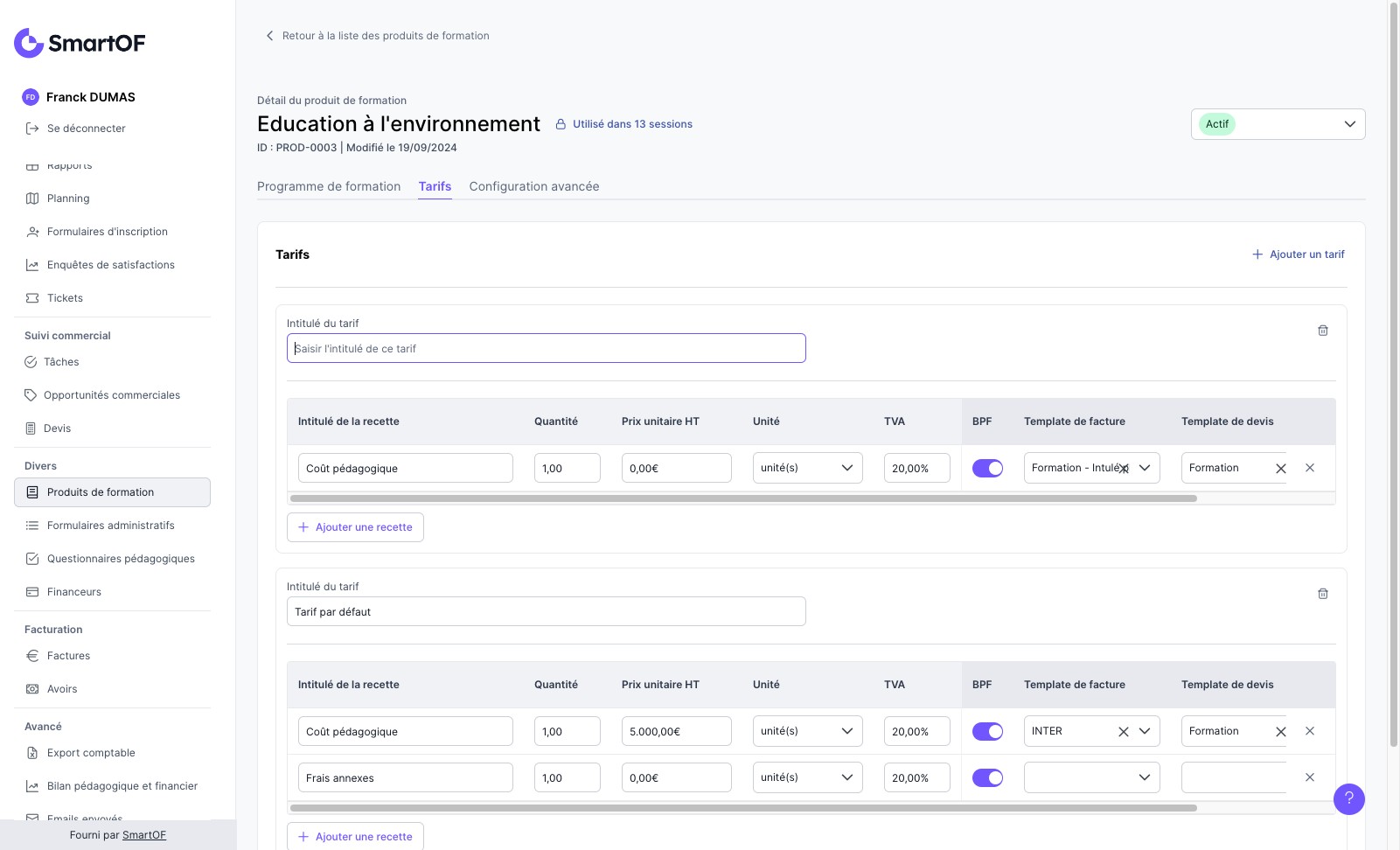 Apprenez à renseigner un ou plusieurs tarifs d'un produit de formation, afin de pouvoir les sélectionner à l'ajout d'un commanditaire dans une session de formation.