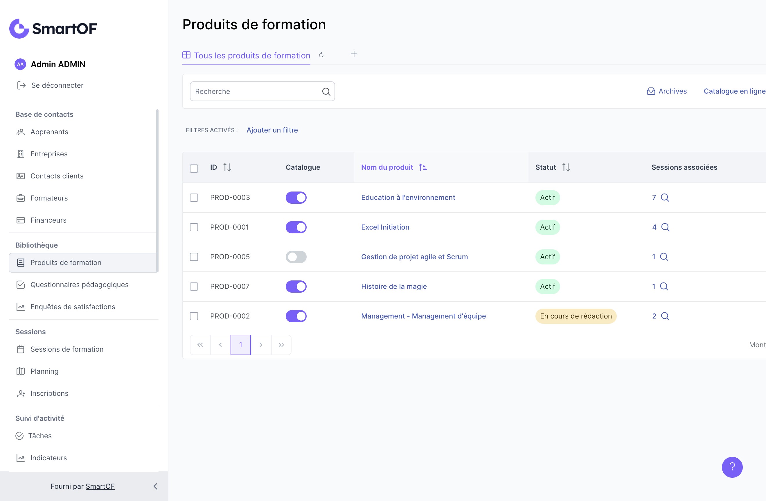 1. Accédez à l'onglet "Produits de formation" du menu principal.