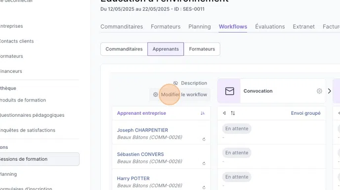 Cliquez sur "Apprenants" pour accéder au workflow apprenant.